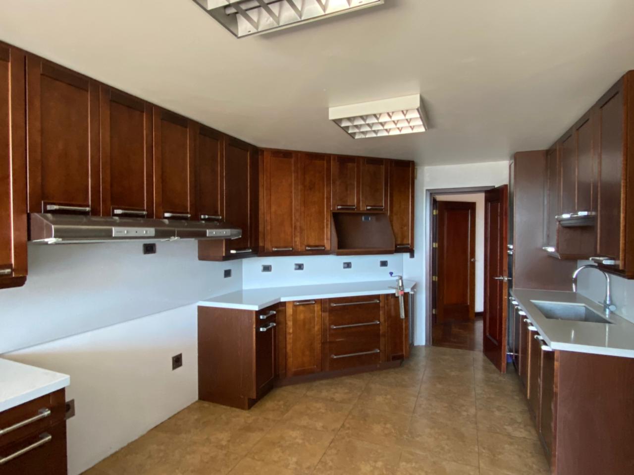 Amplia cocina gourmet con refrigeradora y congelador side by side, tops de granito y gabinetes europeos, lavatrastos de doble ancho y filtro de agua incorporado. 8 tomacorrientes para aparatos de cocina. Acceso y salida directa a balcón. Excelente luz natural y ventilación.